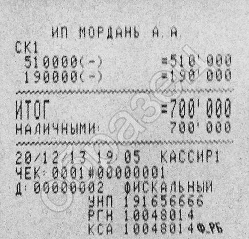 Наличный расчет курьеру, при получении товара. Оплата производится ТОЛЬКО в белорусских рублях. После покупки Вам будет выдан чек. Пример чека отображён ниже.