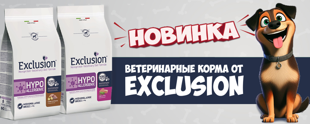 Новинка! Ветеринарные корма от Exclusion (Италия) по отличной цене