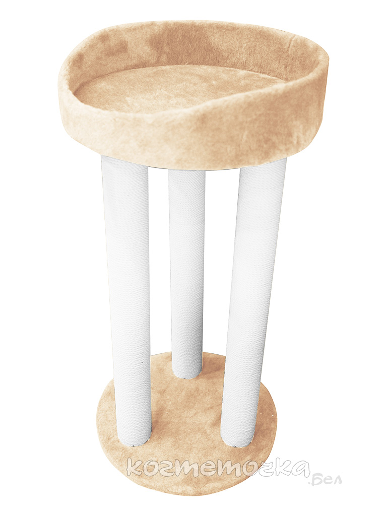 Когтеточка тринога с лежанкой с шариком на резинке (мех, хлопок), 85 см