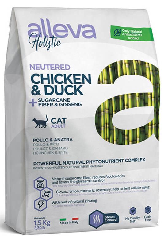 Беззерновой корм Alleva Holistic Neutered Adult Cat для кастрированных котов и стерилизованных кошек, курица и утка