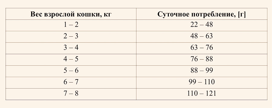 Aнaлитические составные части: сырой белок – 31 %, сырая клетчатка – 3,3 %, сырой жир – 11 %, сырая зола – 9 %, кальций – 1,2 %, фосфор – 0,9 %, калий – 0,7 %, натрий – 0,45 %, магний – 0,06 %, Омега-3 жирные кислоты – 1 %, Омега-6 жирные кислоты – 2,44 %