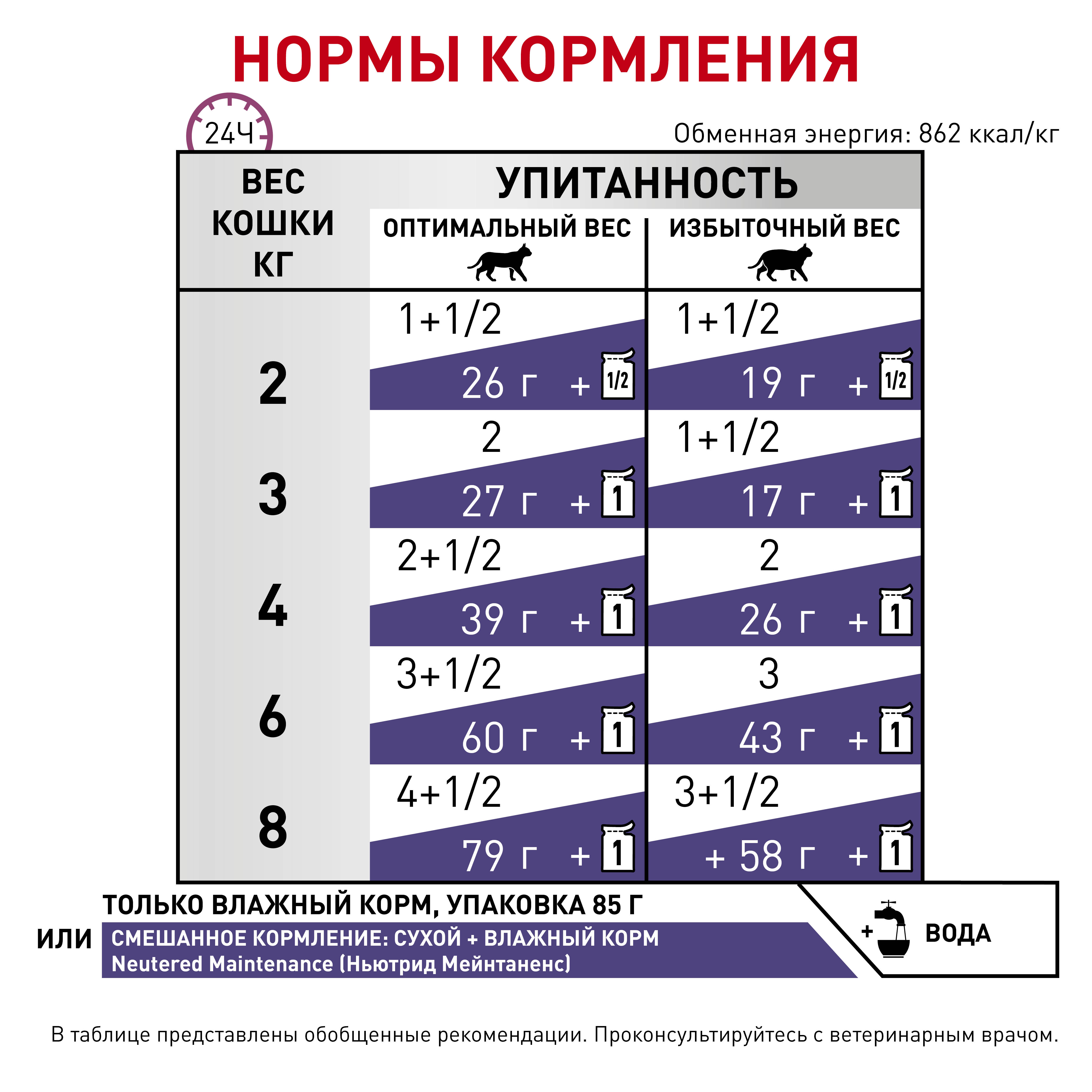 - Для кастрированных / стерилизованных котов и кошек с момента операции до 7 лет