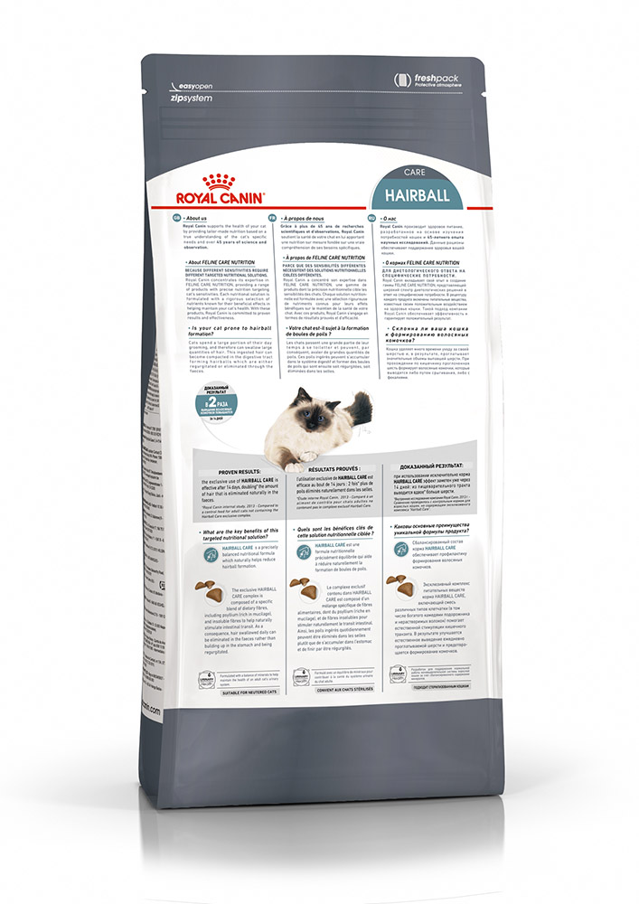 HAIRBALL CARE – тщательно сбалансированная формула, помогающая естественным образом снизить риск образования волосяных комочков.