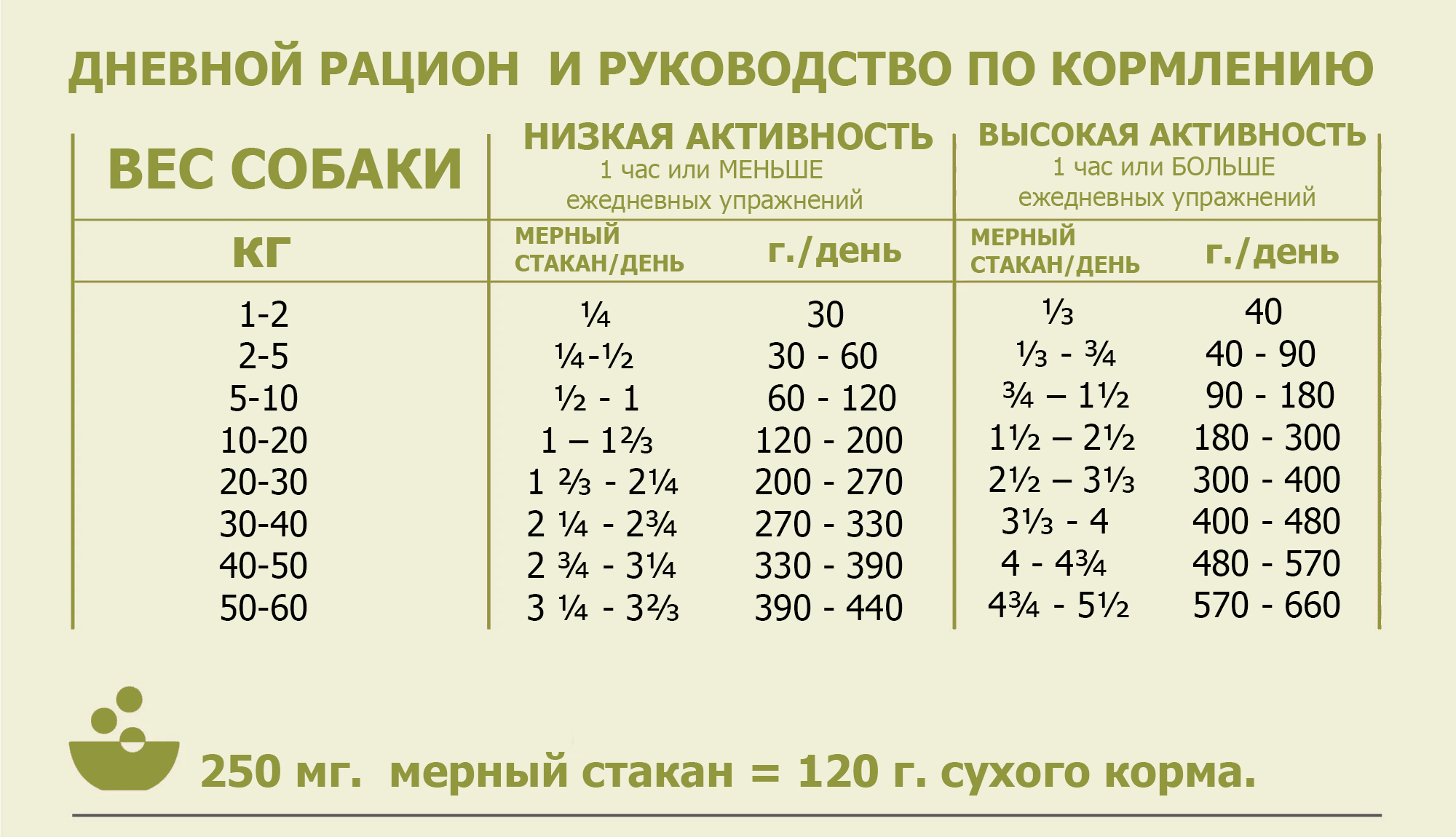 Беременным собакам необходимо увеличить суточную норму корма на 25-50%. Кормящим собакам необходимо предоставить питание в свободном доступе.