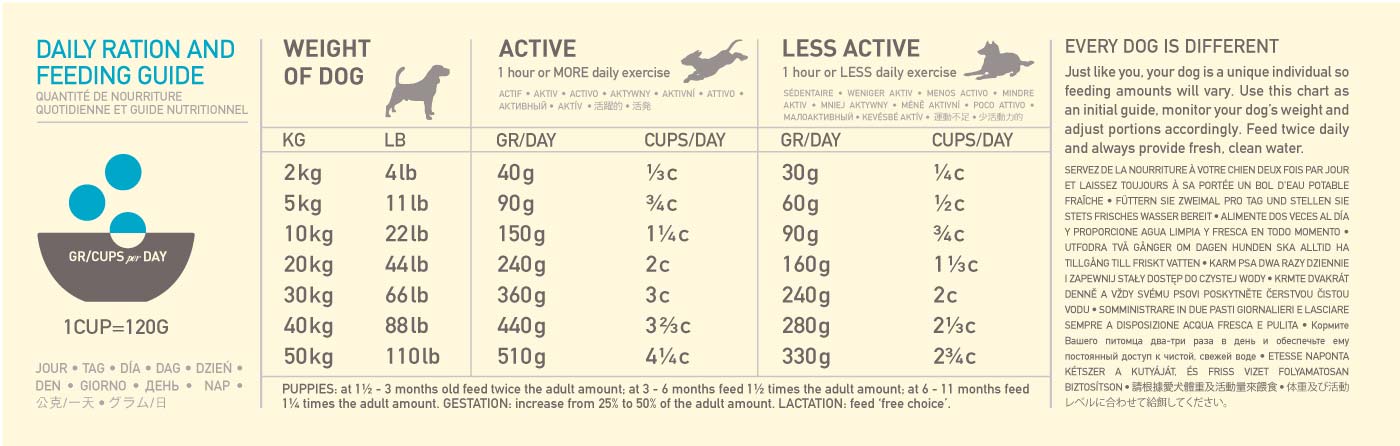 В отличие от традиционных кормов, ACANA обеспечивает поступление большого количества калорий из белков и жиров, и совсем немного — из углеводов, снижая риск ожирения и гарантируя прекрасное здоровье и развитие вашей собаки.