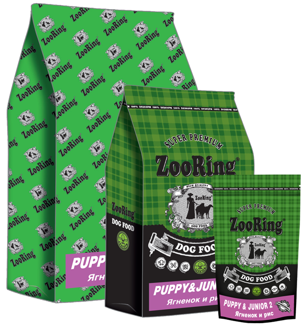 Корм ZooRing Puppy & Junior 2 GRAIN FREE для щенков и юниоров всех пород с 1 до 12-18 месяцев, склонных к аллергии (Ягненок и рис) без пшеницы